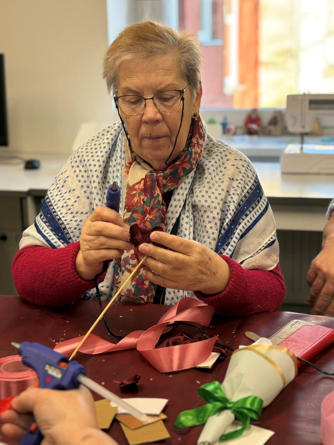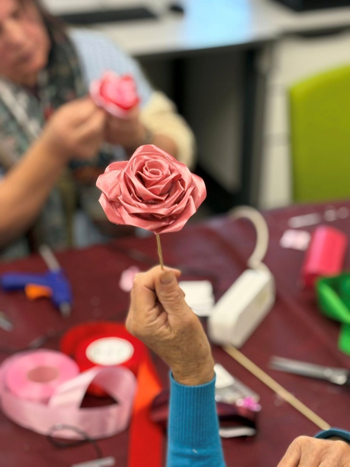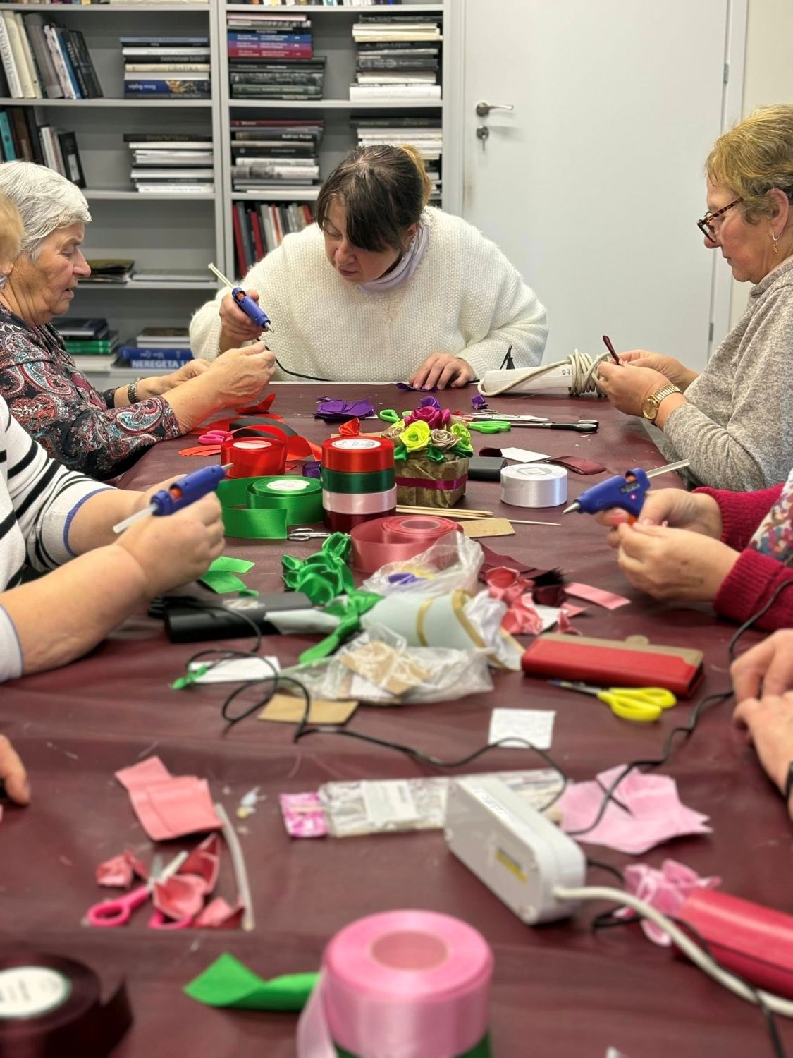 Šiandien ryte bibliotekoje vykusios kūrybinės dirbtuvės su Zita subūrė moteris praktiškam ir estetiškam laikui. Kūrybinės veiklos metu Zita profesionaliai pristatė medžiaginių gėlių – rožių – gamybos techniką, parodydama, kaip iš spalvotų juostelių galima sukurti subtilius ir estetiškus rankų darbo akcentus.