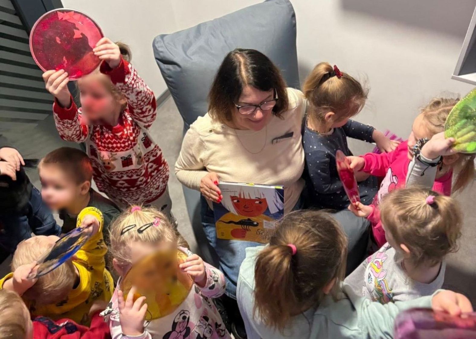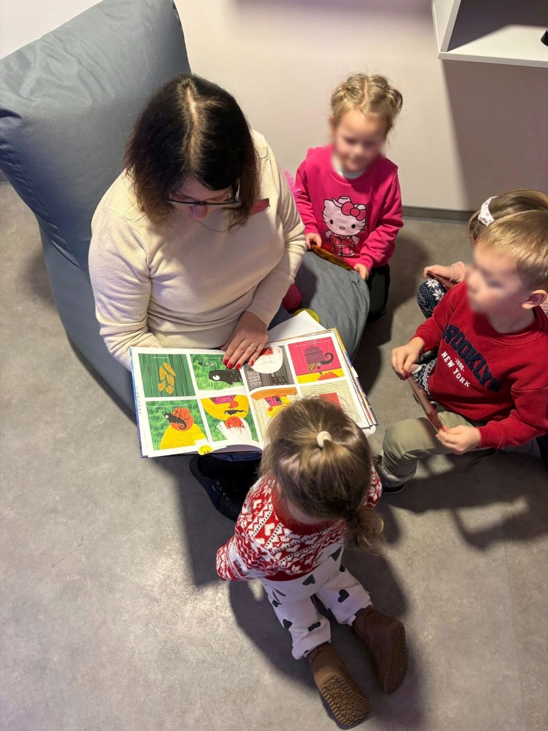 Atlikdami įvairias užduotis pagal knygos tekstą, pasitelkdami pojūčius ir žaisdami, vaikai tapo skaitomos istorijos dalyviais. Po skaitymų vaikai dalyvavo edukacijoje „Atradimai – tau po kojomis!“