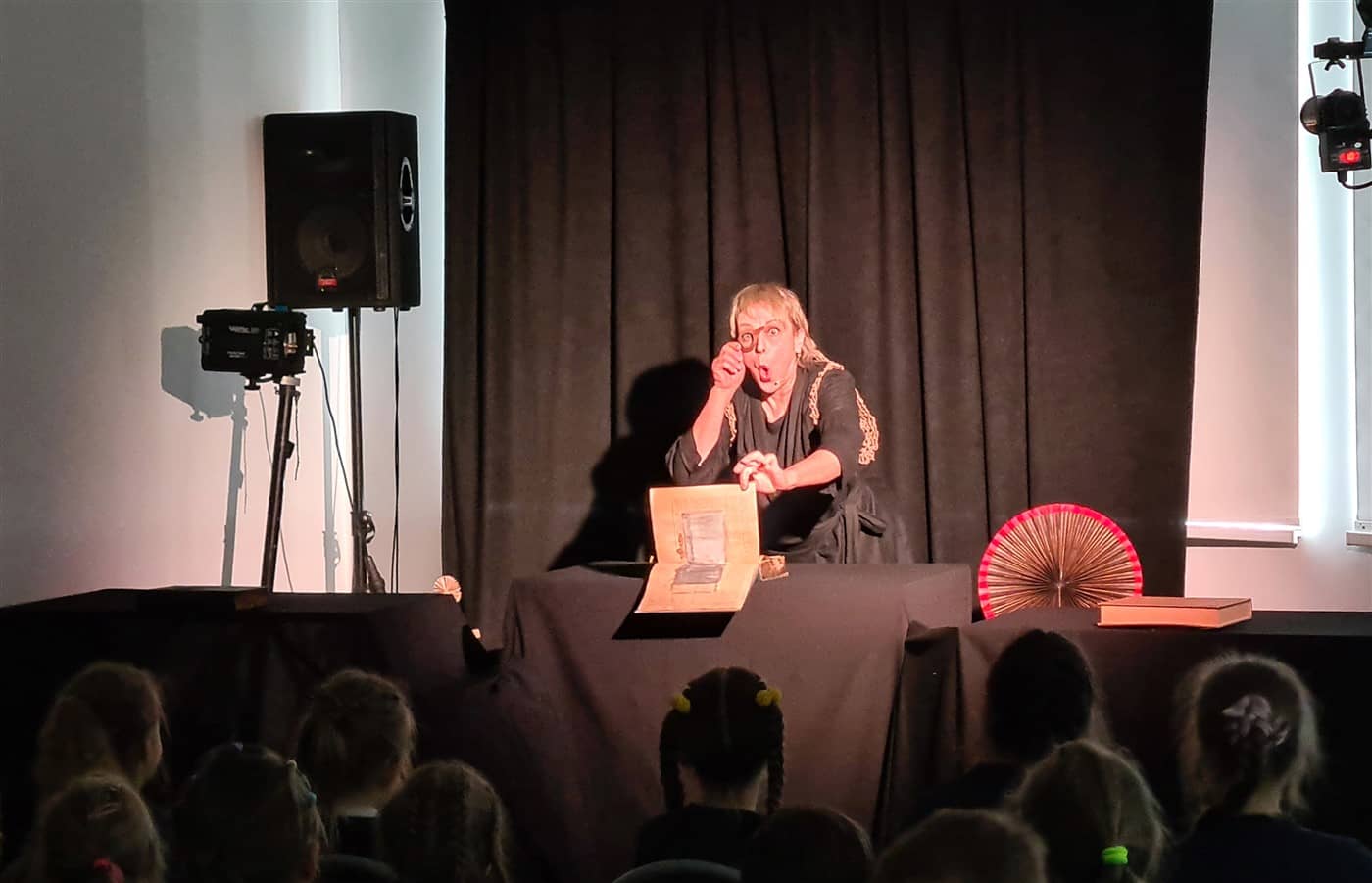 Balandžio 24 d. gausus būrys vaikų kartu su mokytojomis bibliotekoje stebėjo spektaklį „Išmani kepurė“. Jį pristatė jau 21-erius metus džiuginantis ir mažus, ir suaugusius „Stalo teatras“ iš Vilniaus – režisierė, aktorė ir scenografė Saulė Degutytė bei muzikantas Gediminas Žilys. Svečius pasitiko ir pasveikino vyr. bibliotekininkė Lijana Markevičienė.