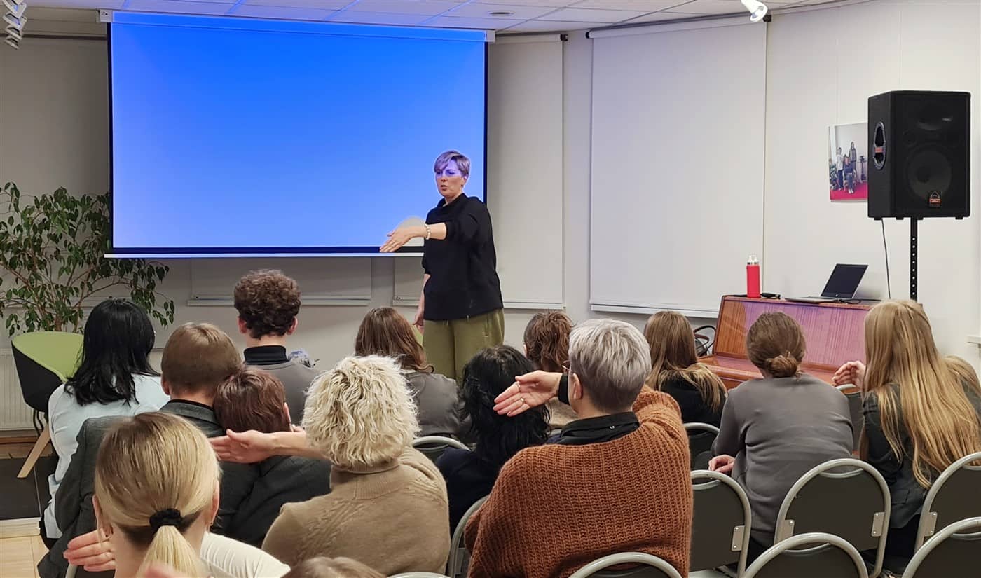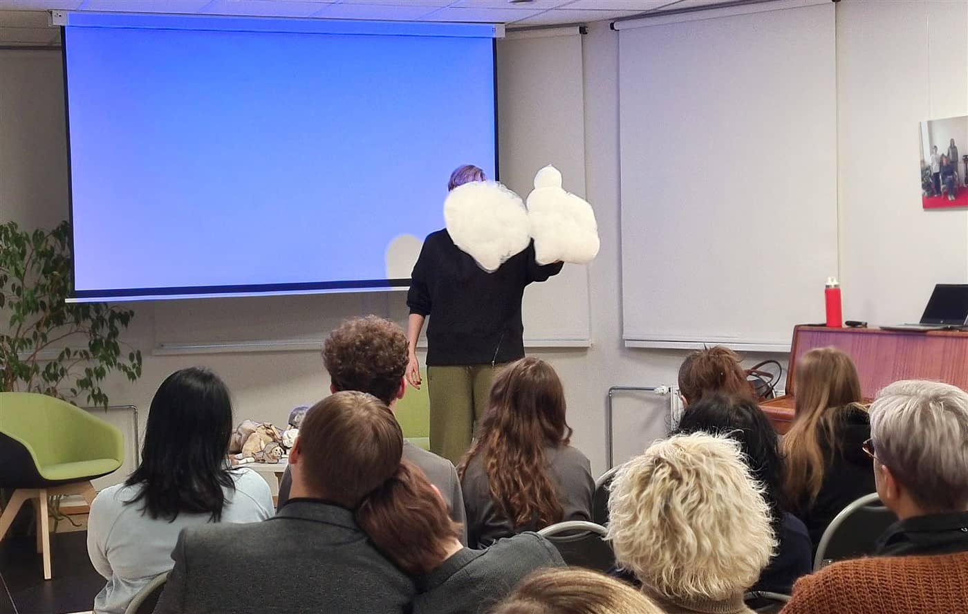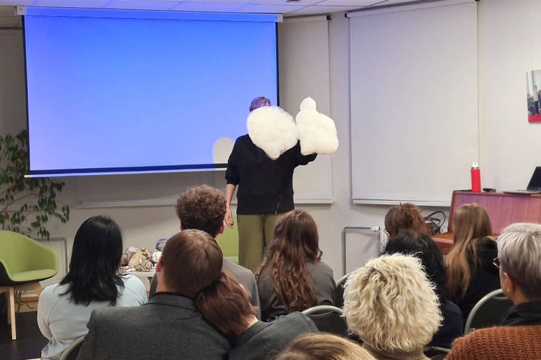 Renginio pradžioje viešnia kalbėjo apie lėlių teatrą, supažindino susirinkusiuosius su savo profesine patirtimi bei dabartinėmis veiklomis. Kaip mėgstamiausias savo darbo sritis režisierė įvardijo spektaklių statymą ir darbą su studentais.