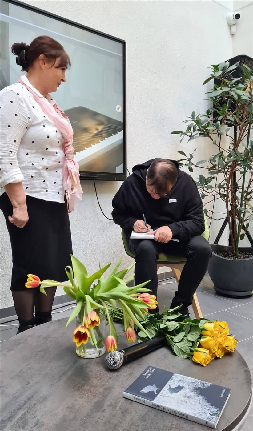 Renginio pabaigoje bibliotekos direktorė Danguolė Abazoriuvienė padėkojo svečiui už kalbėjimą iš širdies ir įkvepiančias mintis, o jam pasibaigus dalyviai dar neskubėjo skirstytis – turėjo galimybę įsigyti autoriaus knygų ir gauti poeto autografą.