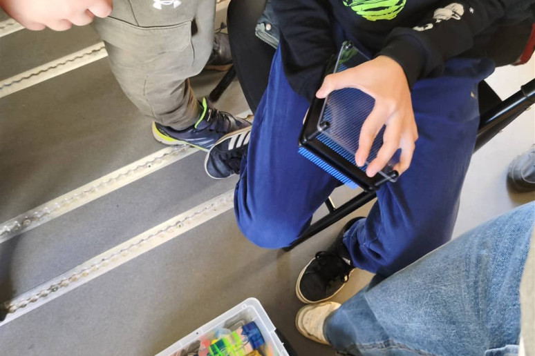 Vėliau Pasvalio Mariaus Katiliškio viešosios bibliotekos Kūrybinių dirbtuvių edukatorė Karolina Markevičiūtė pristatė mobiliąją biblioteką – supažindino su jos galimybėmis, veiklomis ir siūlomomis priemonėmis. Didžiausią įspūdį vaikams paliko sensorinė įranga bei įvairios knygos.