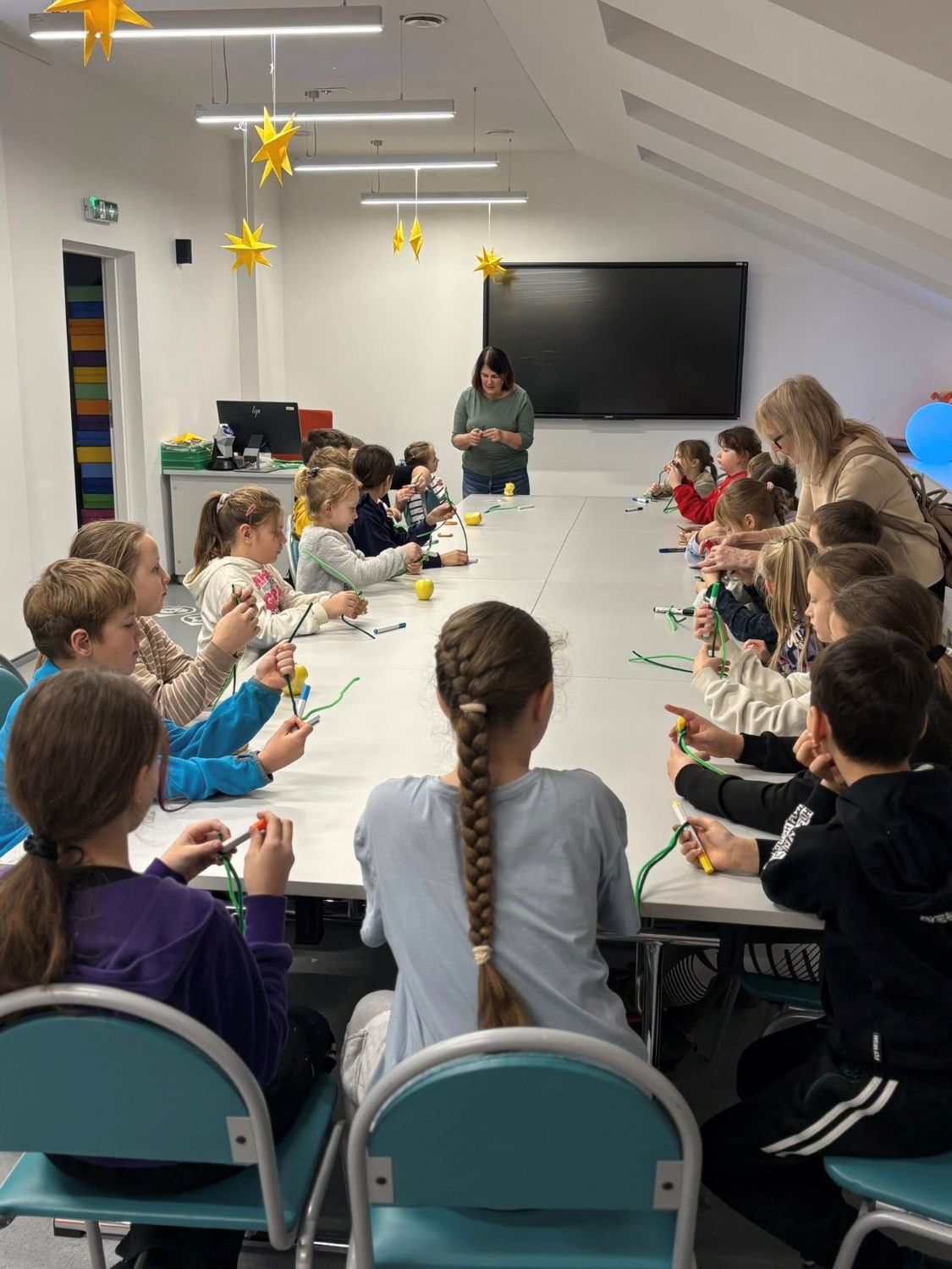 Šiandien bibliotekoje vyko Kalėdinė edukacija vaikams „Žvaigždžių sonata: senosios Kalėdos“.