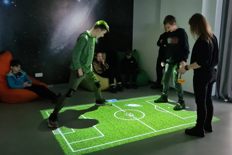 O kaip gi be žaidimų? Vaikai išbandė interaktyvias grindis, stalo futbolą ir kitus stalo žaidimus.