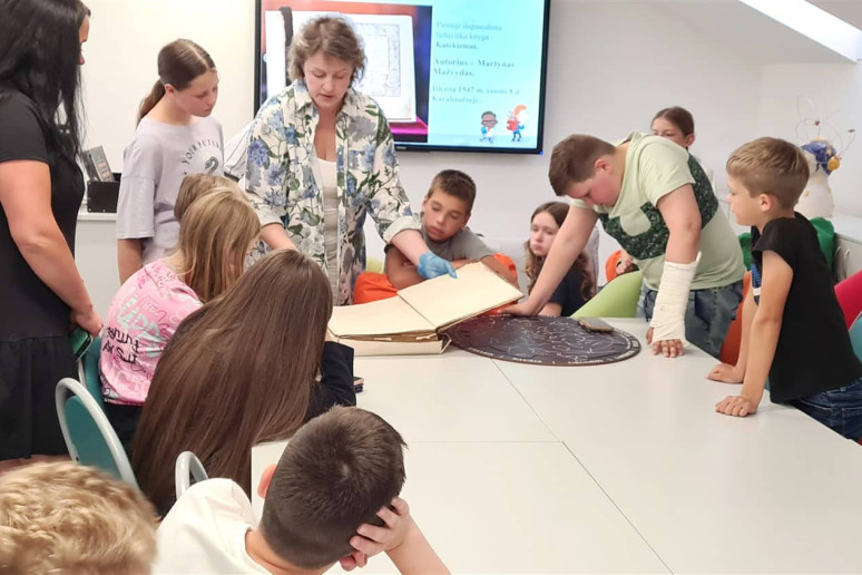 Svečiai dalyvavo edukacinėje programoje „Kaip atsirado knyga“. Edukaciją vedė vyr. bibliotekininkė Lijana Markevičienė.