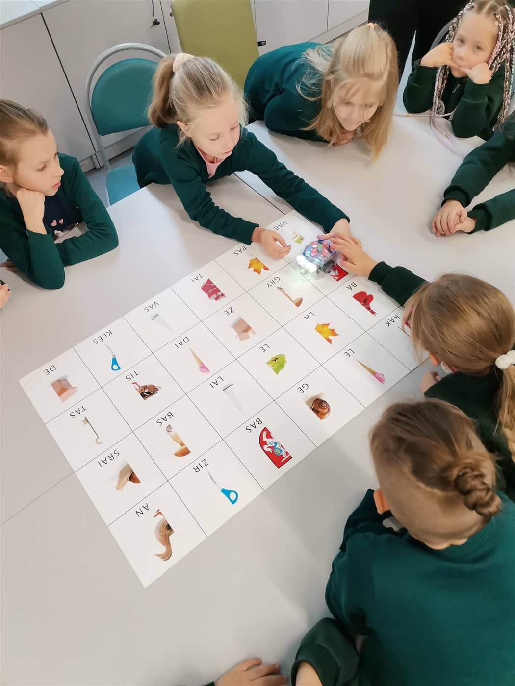Labiausiai įtraukiantis ir daugiausiai pastangų pareikalavęs užsiėmimas – programuojamo robotuko-bitutės kelionė specialiu kilimėliu, ant kurio buvo trūkstamos žodžių dalys. Norėdami jas sujungti – atsidurti ant kitos žodžio dalies, dalyviai turėjo užprogramuoti robotuką. Šioje praktikoje buvo naudojami ne tik skaitymo, bet ir skaičiavimo įgūdžiai.