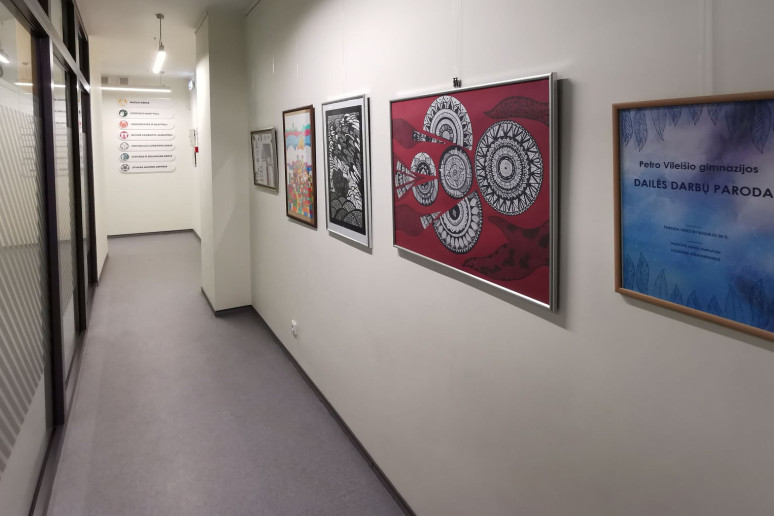 Vaikų erdvėje eksponuojami Pasvalio Petro Vileišio gimnazijos mokinių dailės darbai. Mokytojos, dailininkės Leonoros Stravinskienės vadovaujami mokiniai nupiešė natiurmortų, grafikos darbų, sukūrė karpinių.