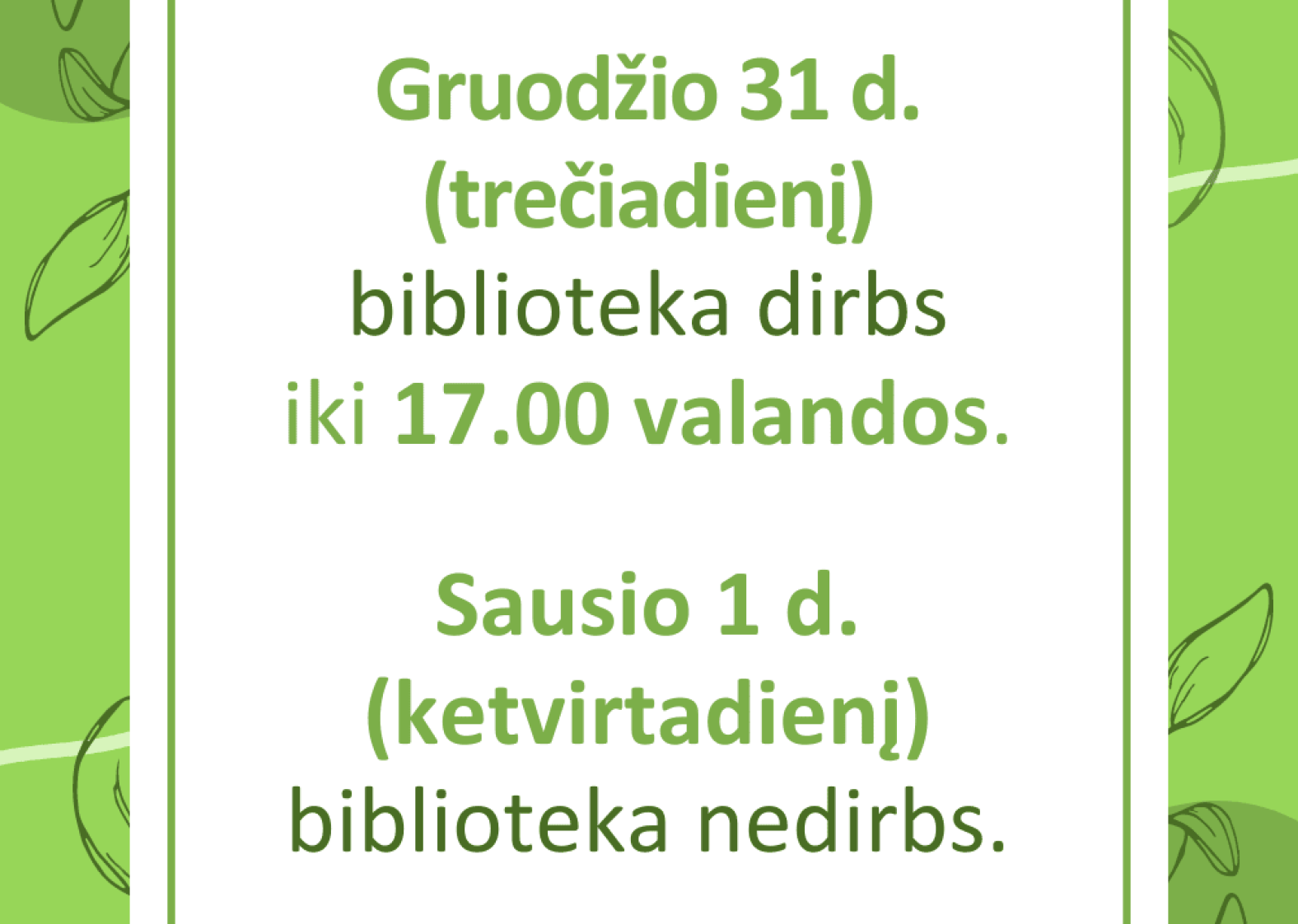 Bibliotekos darbo laikas gruodžio 31 dieną