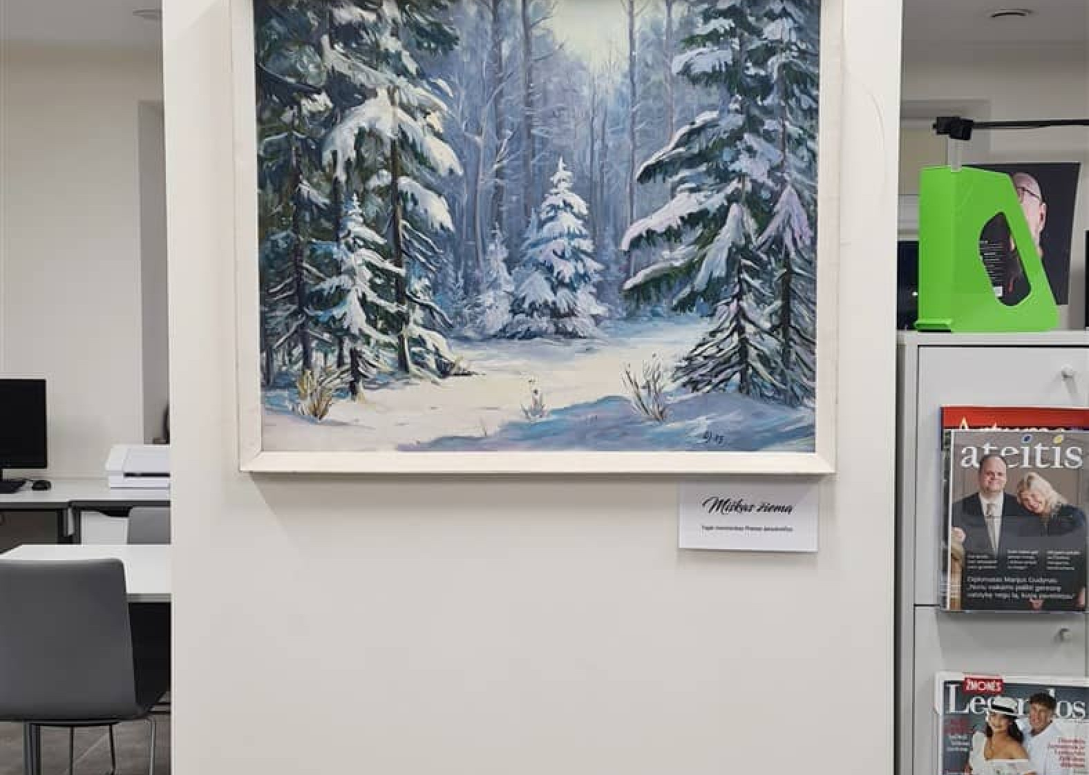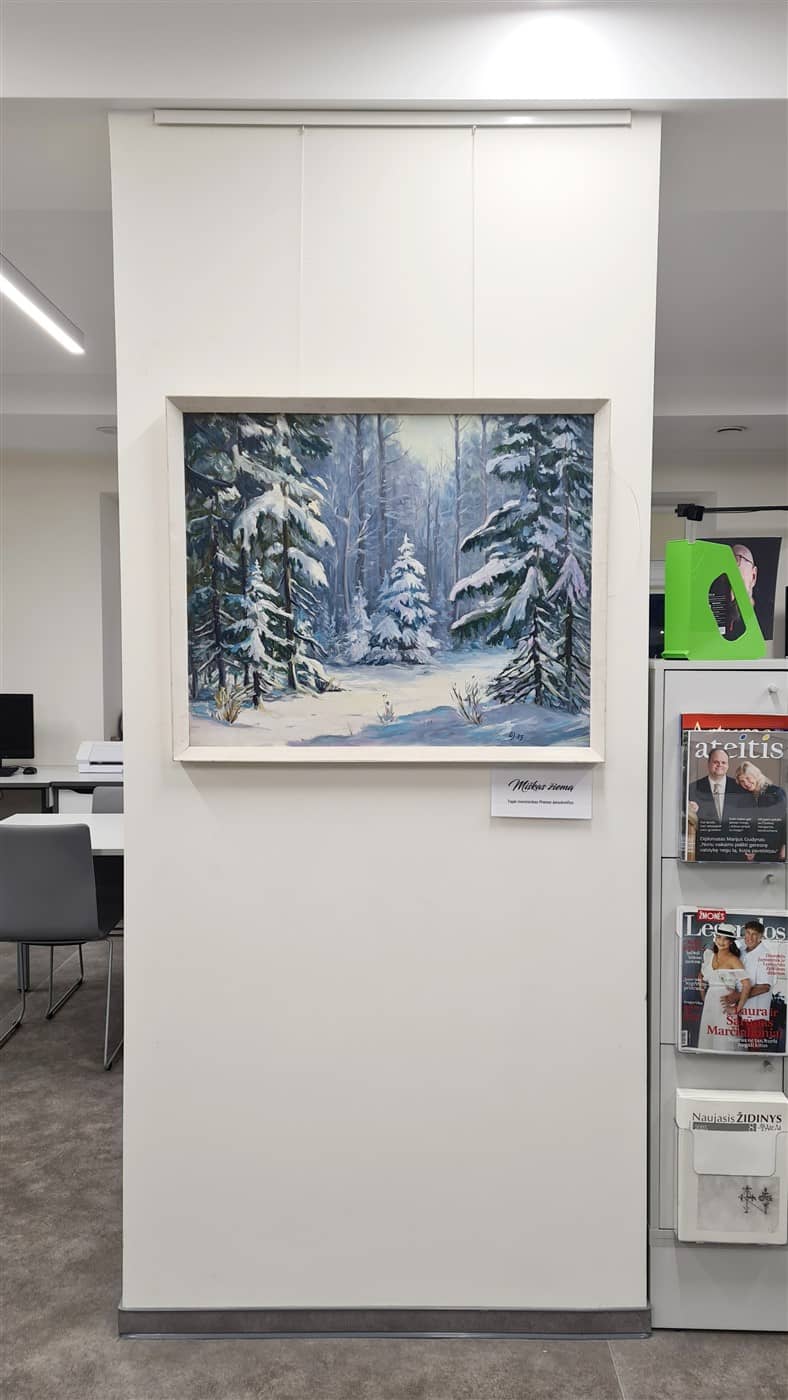 Bibliotekos „Mono arba stereo“ erdvėje (II a.) eksponuojama vieno paveikslo paroda, kurioje – kraštiečio tapytojo ir skulptoriaus Prano Janulevičiaus tapybos darbas „Miškas žiemą“.