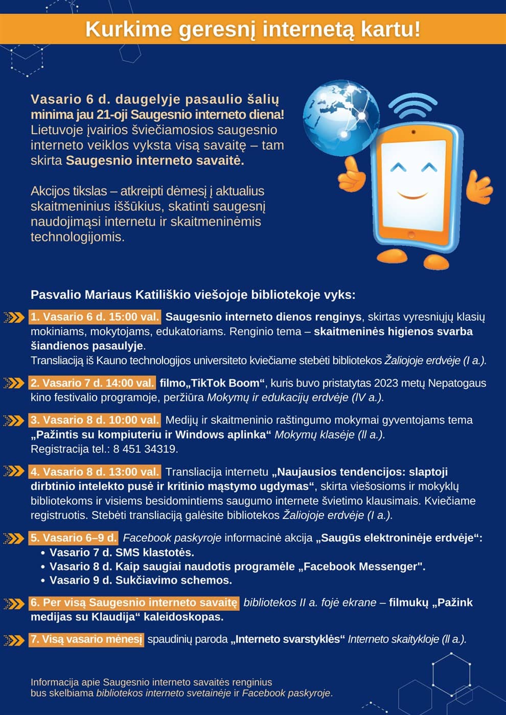Informacija apie Saugesnio interneto savaitės renginius bus skelbiama bibliotekos interneto svetainėje ir Facebook paskyroje.