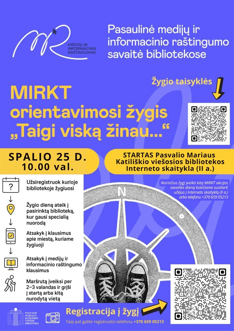 Norinčius žygį įveikti kitą MIRKT akcijos savaitės dieną kviečiame susitarti užėjus į Interneto skaityklą (II a.), arba telefonu.