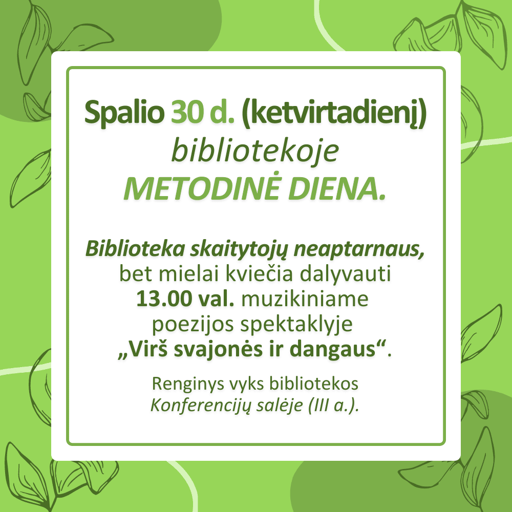 Spalio 30 dieną (ketvirtadienį) bibliotekoje METODINĖ DIENA.