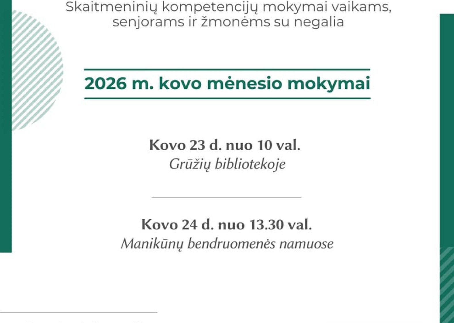Kovo mėnesio mokymų „Skaitmeninio raštingumo mokymasis naudojant sensorinės terapijos metodą” tvarkaraštis jau čia!