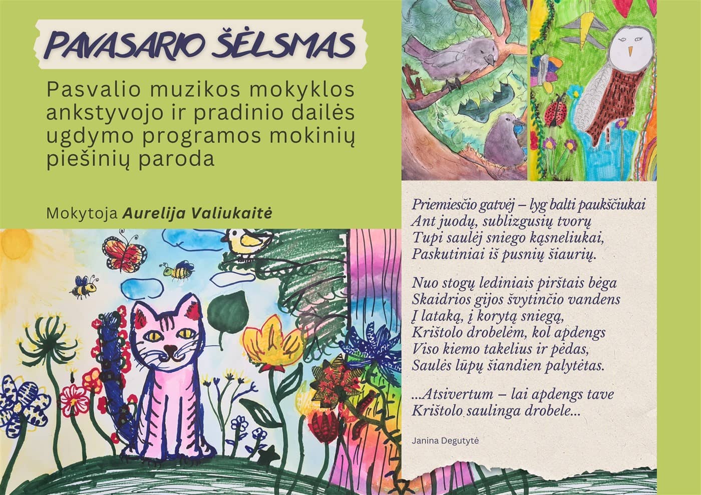 Bibliotekos Vaikų erdvėje (III a.) eksponuojama Pasvalio muzikos mokyklos ankstyvojo ir pradinio dailės ugdymo programos mokinių piešinių paroda „Pavasario šėlsmas“.