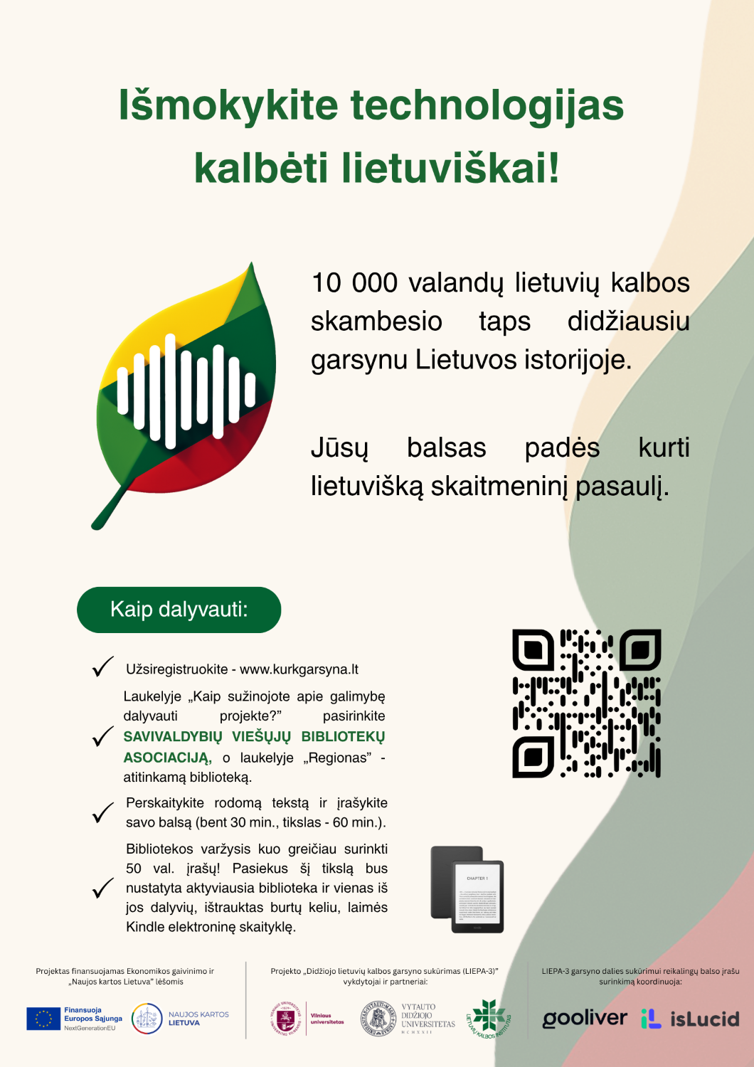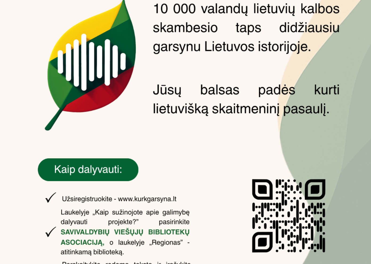 Kviečiame visas bibliotekas ir jų lankytojus prisijungti prie reikšmingo nacionalinio projekto „Didžiojo lietuvių kalbos garsyno sukūrimas (LIEPA-3)”, kurį įgyvendina Vilniaus universitetas, Vytauto Didžiojo universitetas ir Lietuvių kalbos institutas.