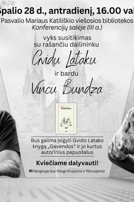 Susitikimas su rašančiu dailininku Gvidu Lataku ir bardu Vincu Bundza