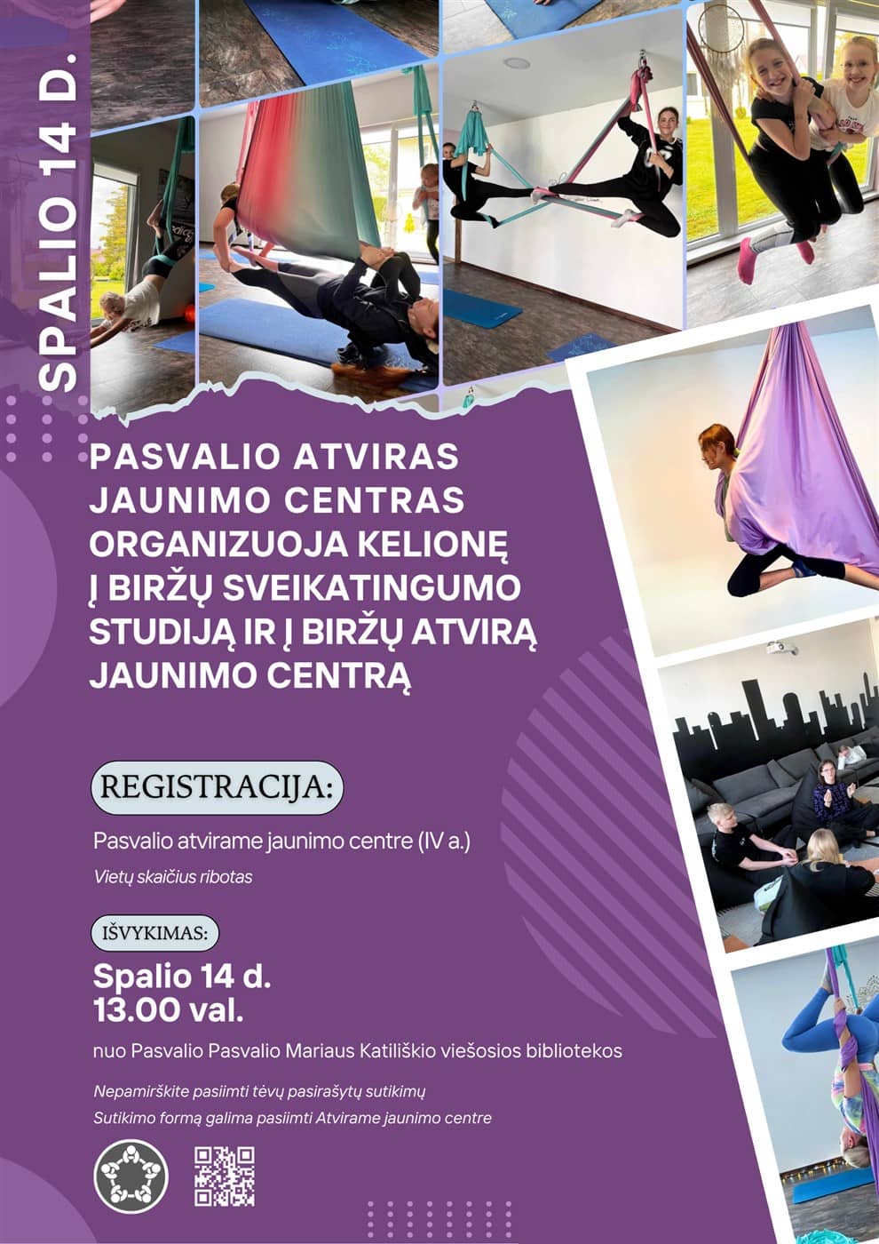 Spalio 14 d. (antradienį) 13.00 val. Pasvalio atviras jaunimo centras organizuoja kelionę į Biržų sveikatingumo studiją ir Biržų atvirą jaunimo centrą.